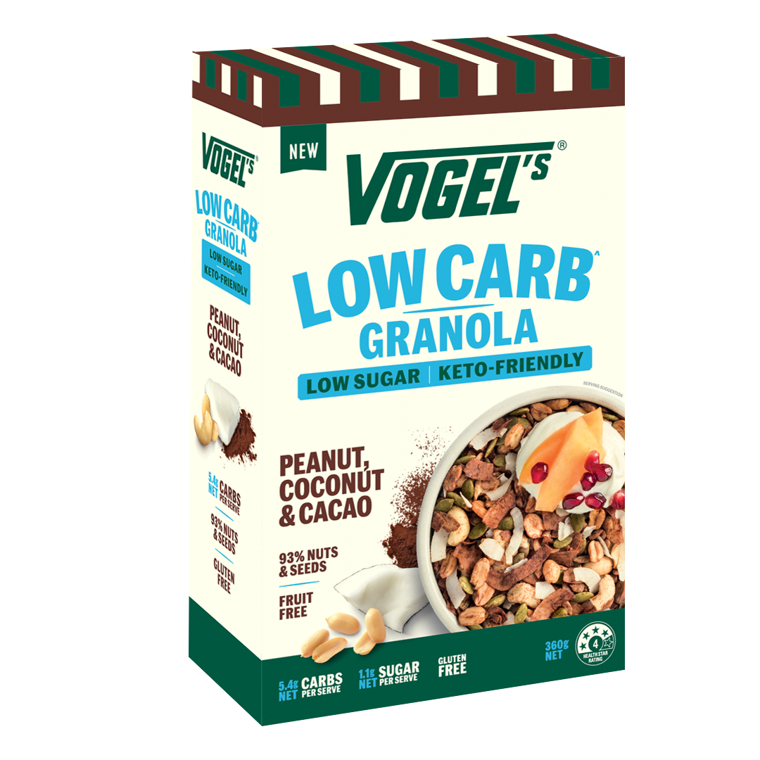 *Vogel’s Low Carb Granola has at least 70% less carbohydrates than standard granolas.
